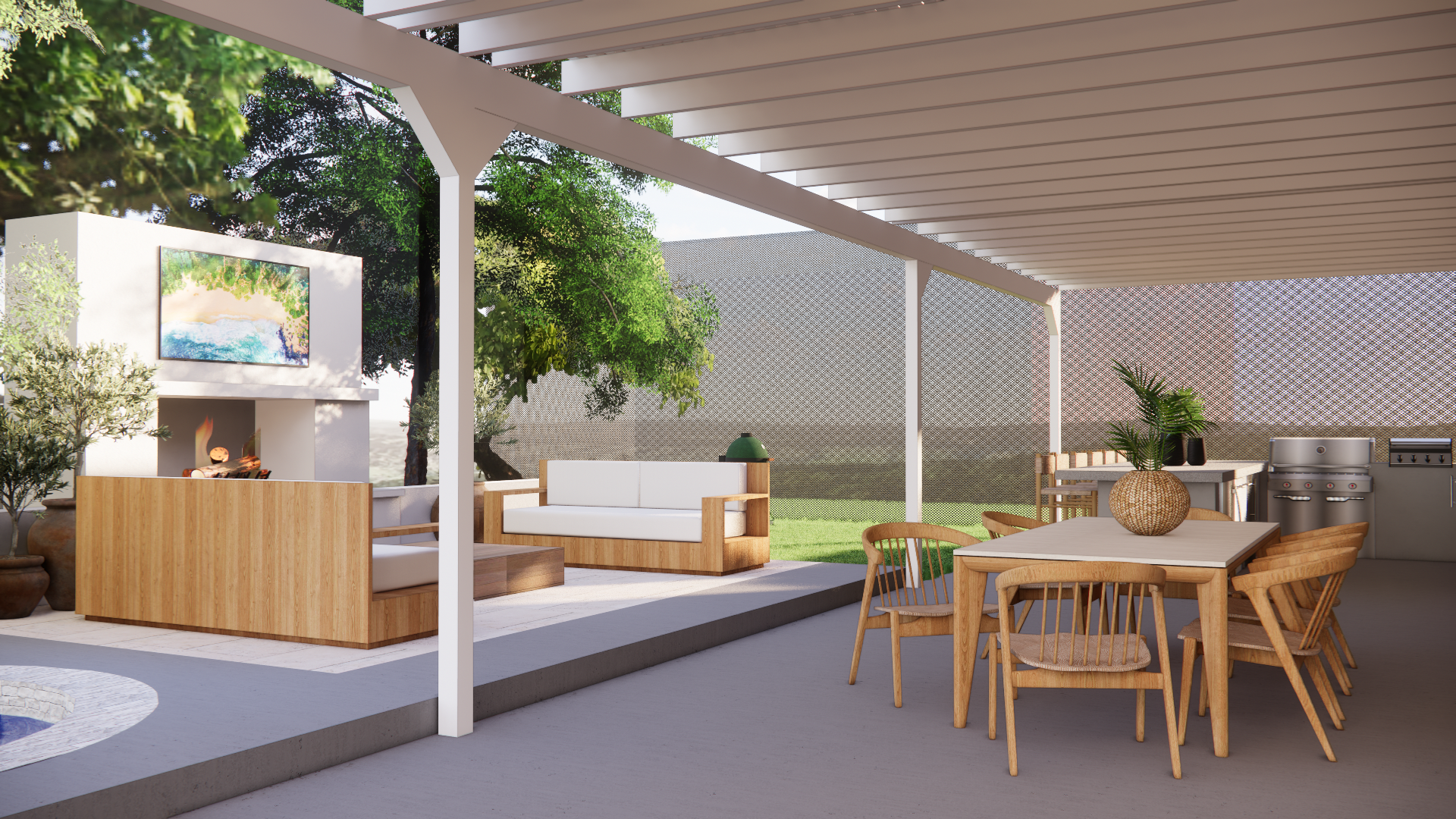 The Cormorant Lane Project in Laguna Niguel transformed an expansive backyard into a fully customized outdoor living experience designed for connection, entertaining, and everyday enjoyment. The clients envisioned a space where they could comfortably host family and friends, so we designed a fully equipped outdoor kitchen, a resort-style pool ideal for sunbathing, and multiple lounge areas anchored by fireplaces to create warm, inviting gathering zones throughout the yard. Each area was thoughtfully planned to feel cohesive yet purpose-driven. A standout personal feature is the custom batting cage, built to support their son’s passion and make the space uniquely theirs. The result is a layered, lifestyle-driven outdoor environment the family can grow into and enjoy for years to come.