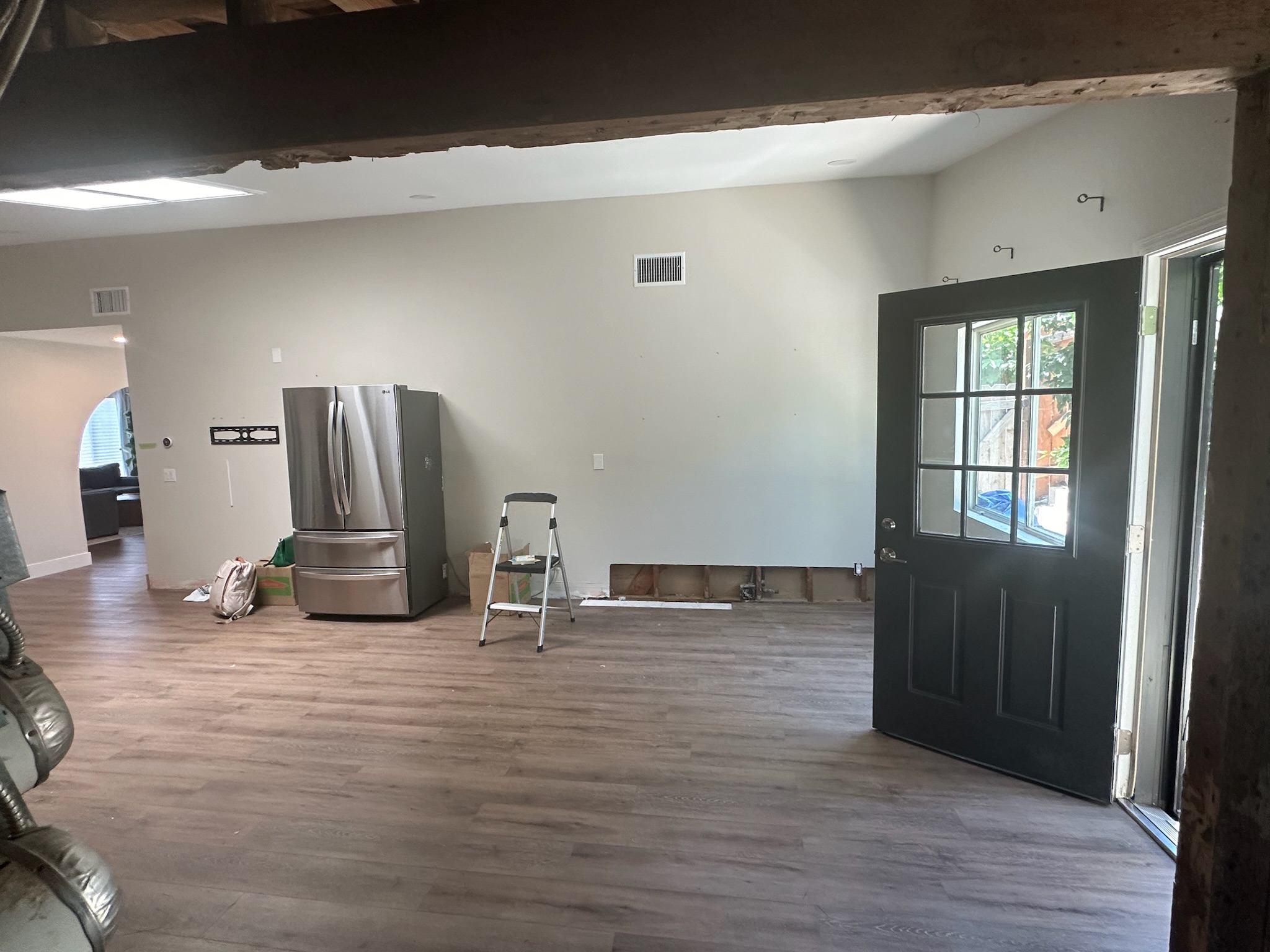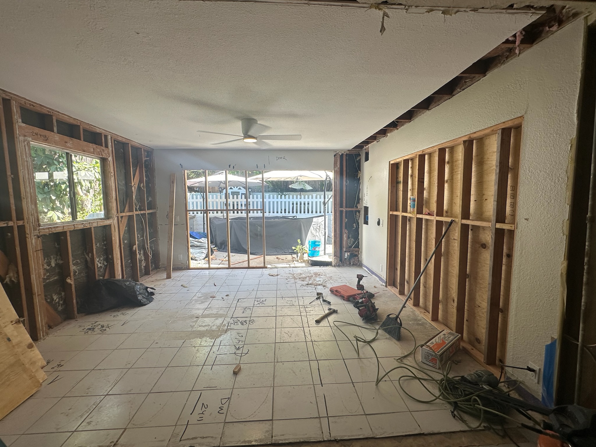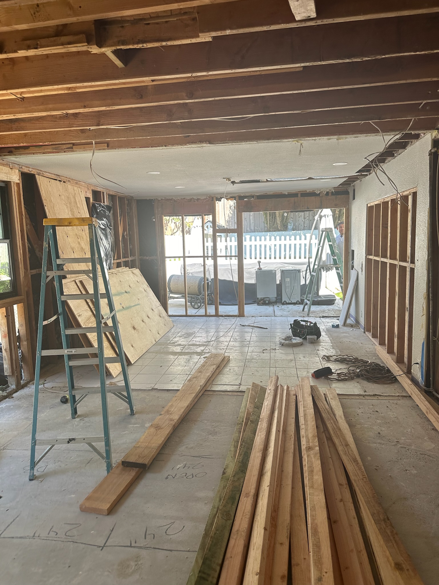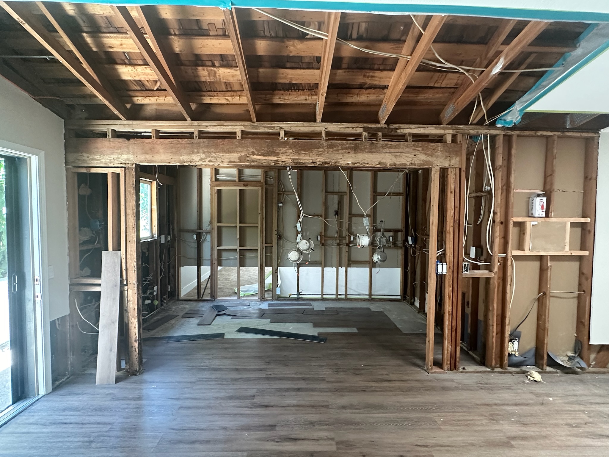 Just 6–8 months after moving in, the homeowners faced a major roof leak that damaged much of their home, forcing a full kitchen demo and exposing a series of unexpected issues as we opened up walls and tore out flooring. One of the biggest challenges was a back addition installed by previous owners—poorly planned and disconnected, it left the kitchen without a proper exit to the backyard and created awkward, unusable space in the primary bedroom.